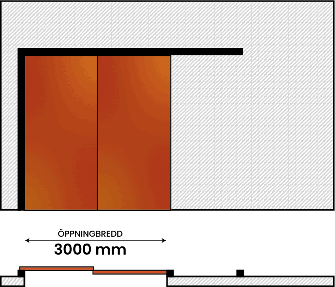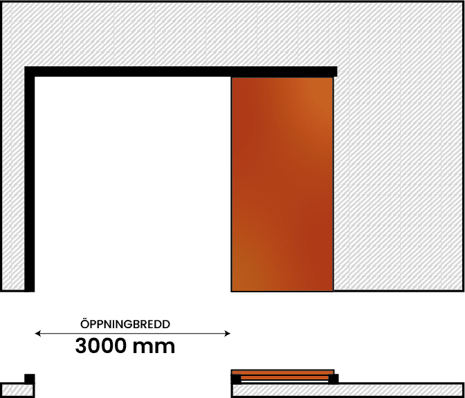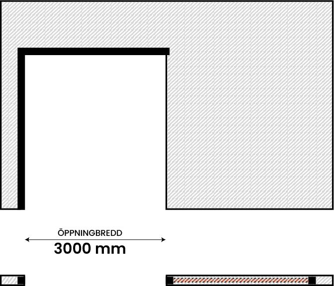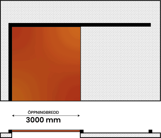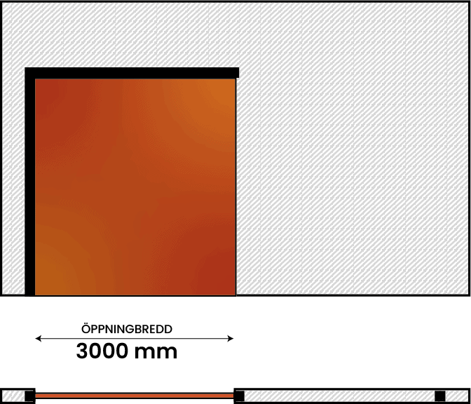 Den enkelflygliga brandskjutporten består av ett fast portblad som löper utanpå väggen. Kund väljer val av riktning (V/H).